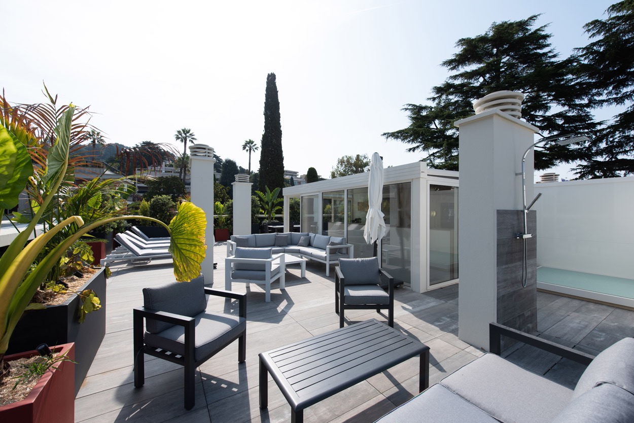 ◦ Toit terrasse de 130 m² avec cuisine d'été entièrement équipée
